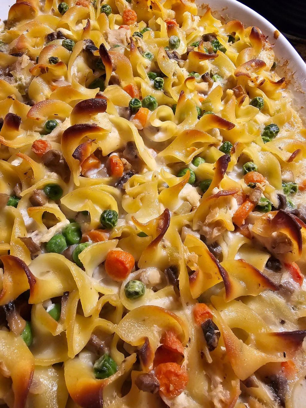 * If you like, you can top your casserole with corn flakes, bread crumbs, or crushed Ritz crackers. When I do this, I like to melt butter and toss the topping in it, then add as a topper.